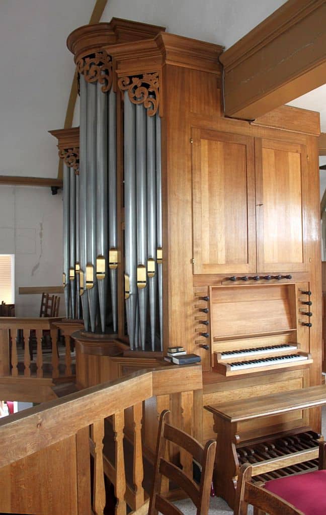 Hoofdwerk: C – f3 Prestant 8′, Gedekt 8′, Octaaf 4′, Octaaf 2′, Mixtuur III-IV sterk, Dulciaan 8′.