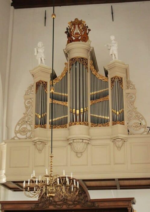 HOOFDWERK (C – f3) 54 TOETSEN: Prestant 16′ (discant), Bourdon 16′ (discant), Prestant 8′, Holpijp 8′, Octaaf 4′, Quintfluit 2 2/3′, Octaaf 2′, Sexquialter II sterk, Cornet IV sterk (discant), Mixtuur IV-V sterk (B/D), Trompet 8′ (B/D).