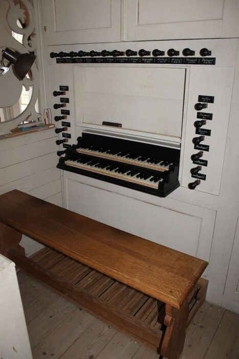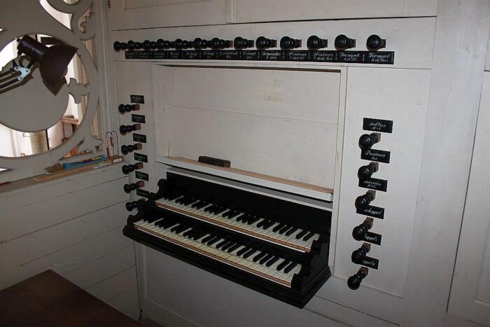 BOVENWERK (C – f3) 54 TOETSEN: Holpijp 8′, Prestant 4′, Roerfluit 4′, Woudfluit 2′, Dulciaan 8′ (2002 was oorspronkelijk gereserveerd voor Vox Humana 8′).