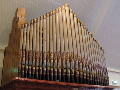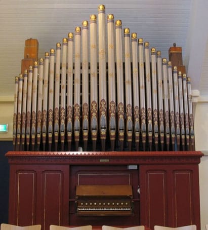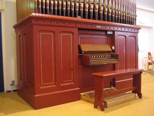 Het orgel stond in eerste instantie op een galerij boven de preekstoel, tot het in 2003 (bij de verbouwing van de kerk) beneden werd geplaatst (achterin de kerk). Het pijpwerk is, met uitzondering van de Open Diapason 8′, geplaatst in een zwelkast.