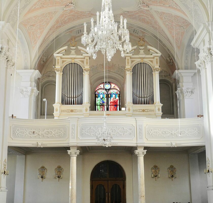 Koppelingen: Hauptwerk – Schwellwerk, Hauptwerk – Positiv, Schwellwerk – Positiv, Pedal – Hauptwerk, Pedal – Schwellwerk, Pedal – Positiv.