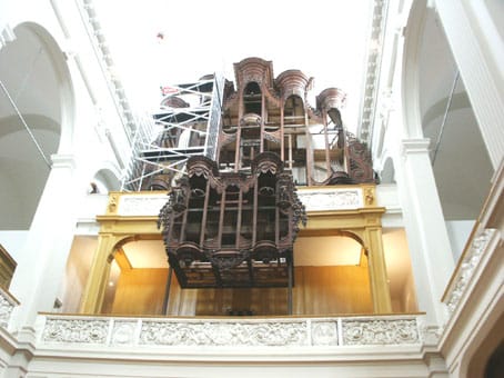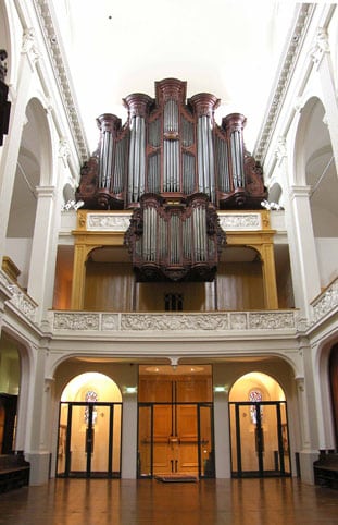 In 1862 bouwde F.C. Smits het orgel in Amsterdam. Het is één van de weinige Smits-orgel buiten Noord-Brabant. In 1882 werd het door de bouwer vergroot en voltooid. Adema plaatste in 1896 een Barker-machine op het Hoofdwerk. In 1941/1942 voerde Joseph Adema een restauratie uit, waarbij hij de dispositie ook wijzigde. Het werd jarenlang niet gebruikt, totdat in 1985 aan de bel werd getrokken. Het instrument was al in 1973 door de gemeente Amsterdam gekenmerkt als een uitzonderlijk instrument in de klasse A. Restauratie liet lang om zich wachten: