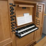 NEVENWERK (C – f3) 54 TOETSEN: Holpijp 8′, Openfluit 4′, Quint 3′, Woudfluit 2′, Terts 1 3/5′, Dulciaan 8′.
