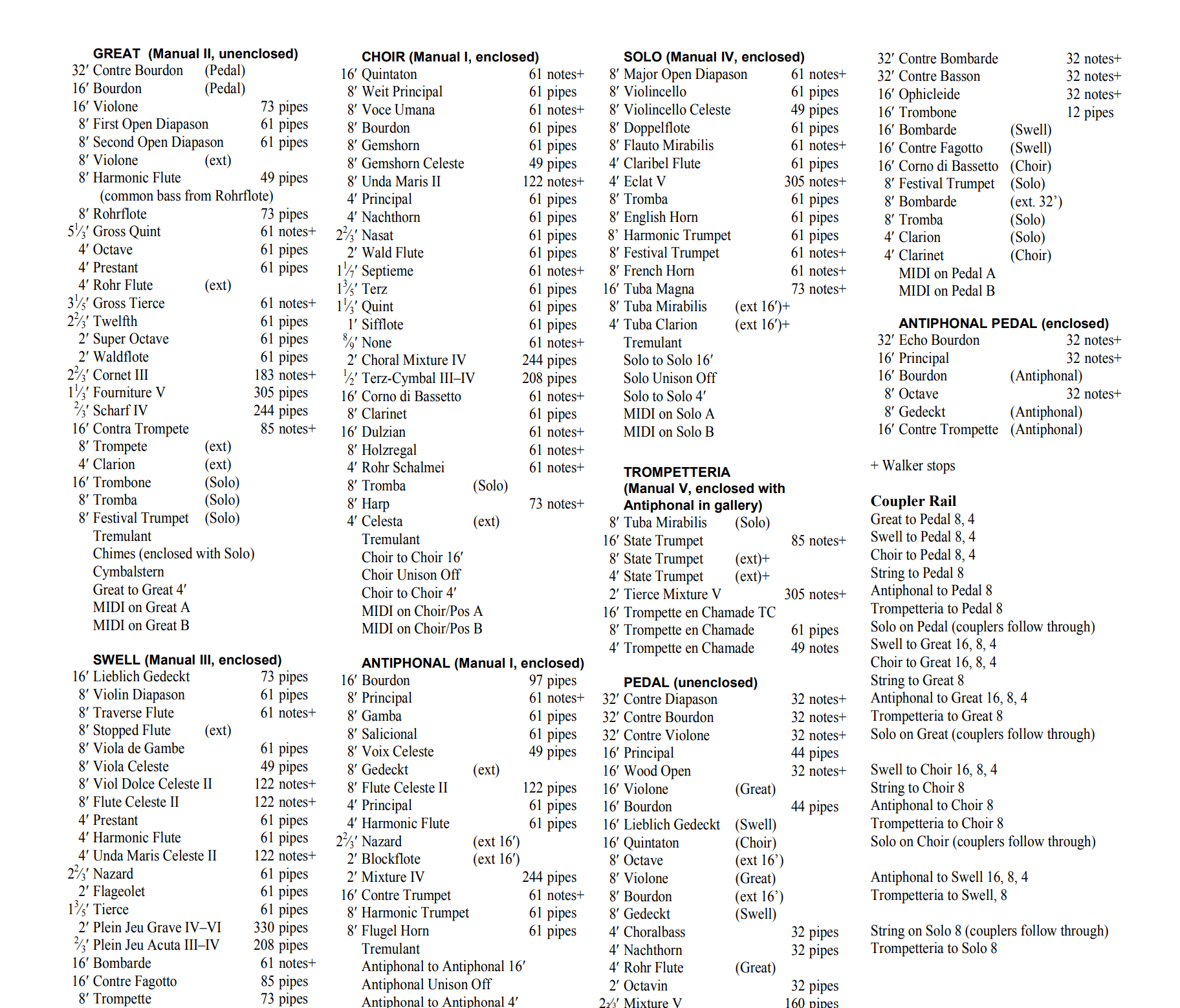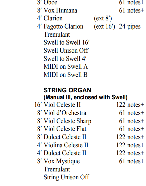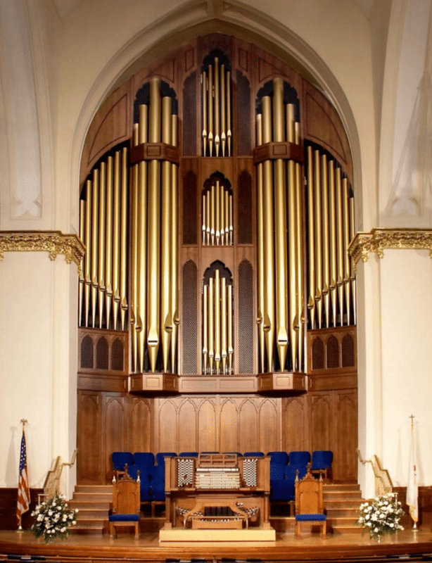 In 2006 bouwde A.E. Schlueter Pipe Organ Company een nieuw hybride-orgel met 92 stemmen, 5 manualen en een vrij pedaal voor de First United Methodist Church in Atlanta (Georgia) USA. Het pedaalklavier is radiaal concaaf.