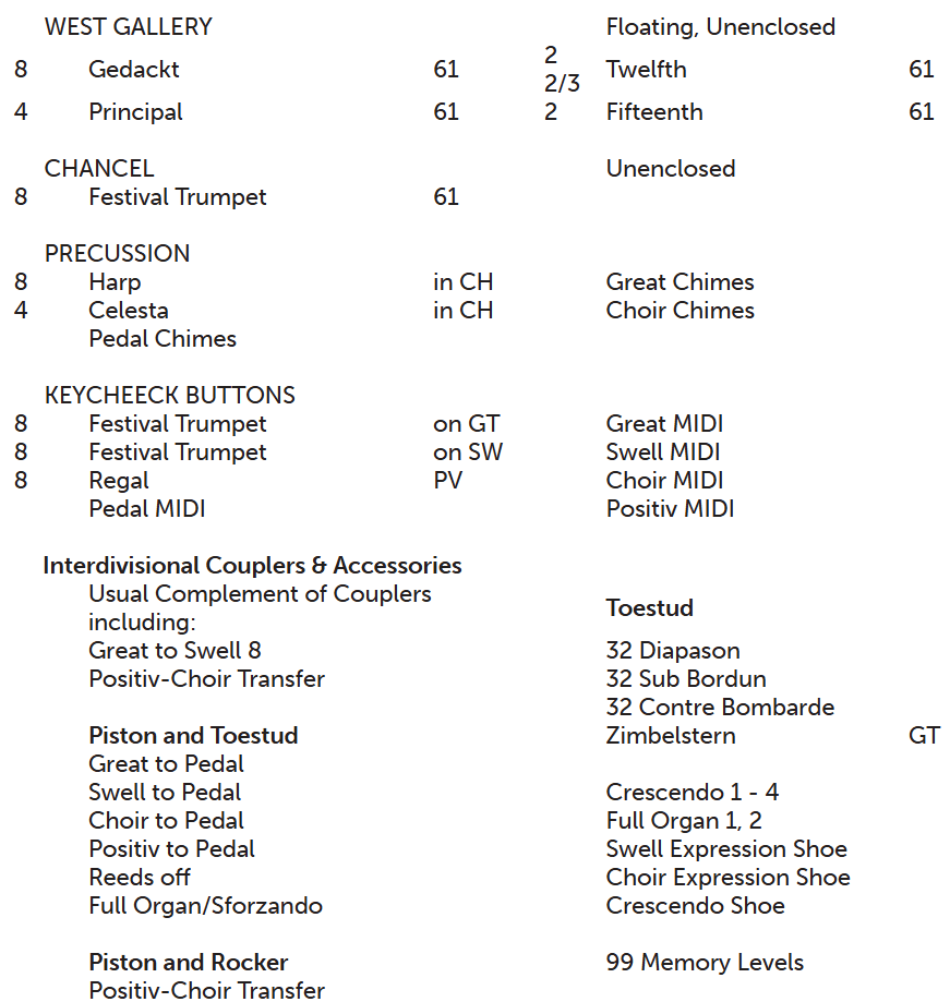In 1969 bouwde Schantz Organ Company opus 684. Een nieuw orgel met 4 manualen en een vrij pedaal voor de Grace United Methodist Church in Atlanta (Georgia) USA. Het pedaalklavier is concaaf.