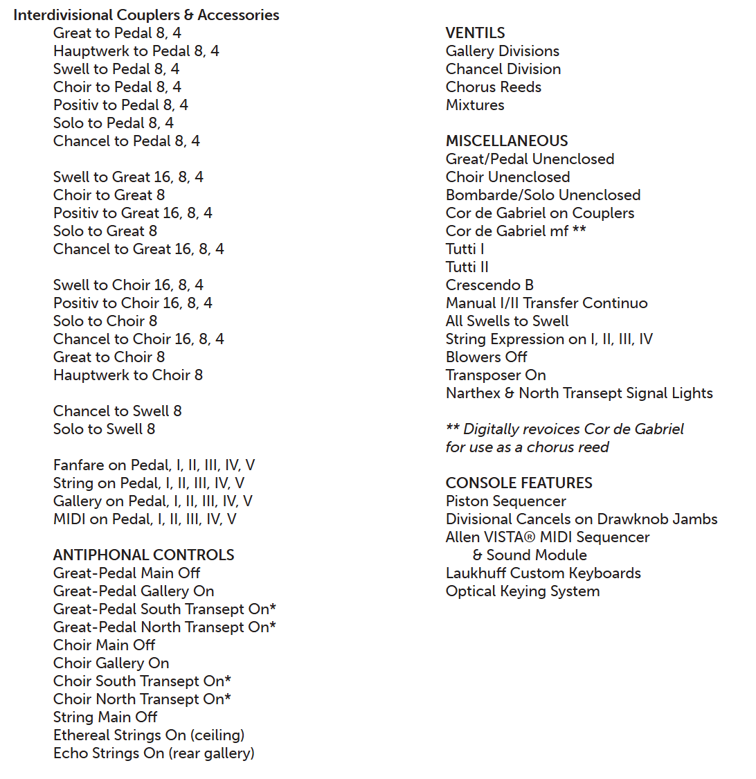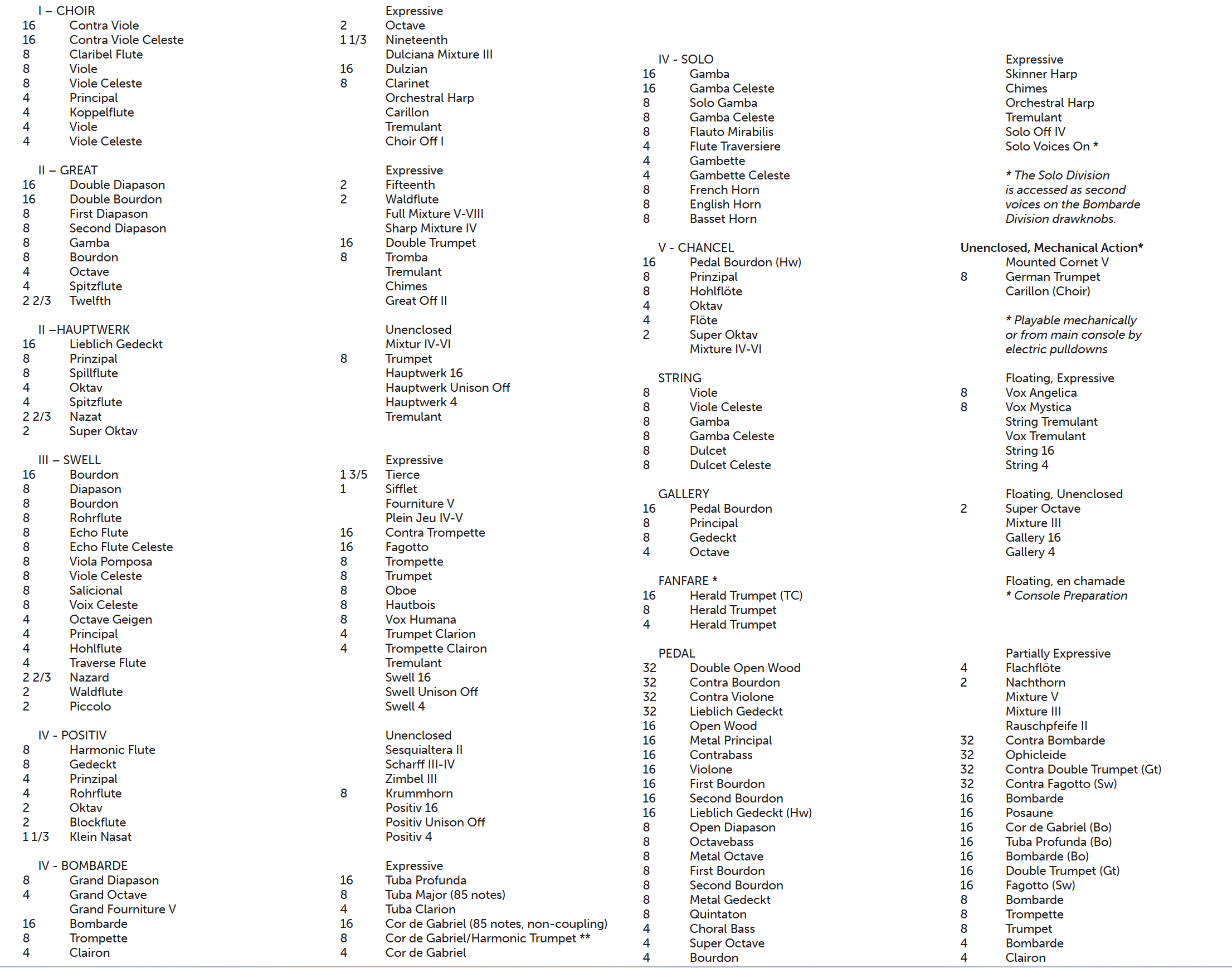 In 1967 bouwde Schlicker Organ Company een nieuw orgel met 5 manualen en een vrij pedaal voor de Peachtree Presbyterian Church in Atlanta (Georgia) USA. Het pedaalklavier is radiaal concaaf.