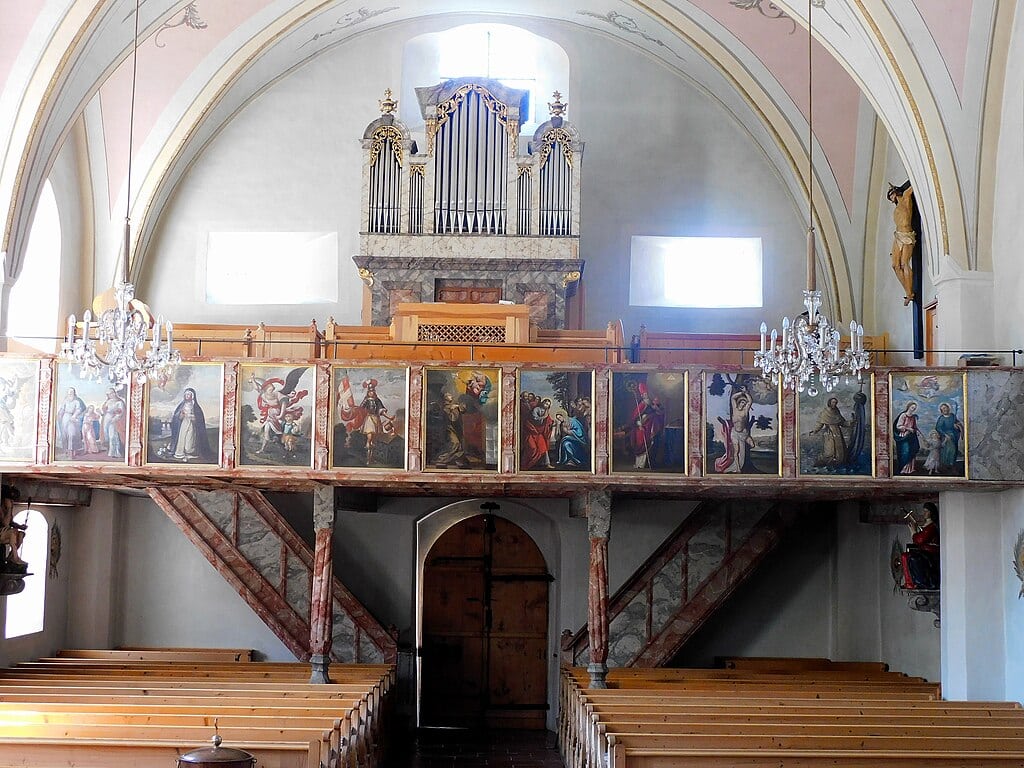 HAUPTWERK (C – f3) 54 TOETSEN: Principal 8′, Gamba 8′, Waldflöte 8′, Bordun 8′, Octav 4′, Flöte 4′, Flauto Duodecima 3′, Superoctav 2′, Mixtur 4 fach.