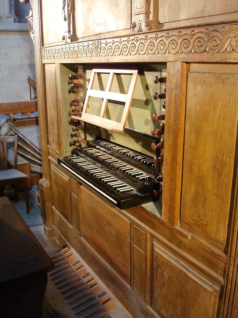 Récit: g – f3 Bourdon-Flûte 8′ (2 rangs), Cornet 4 rangs, Tremblant Doux.