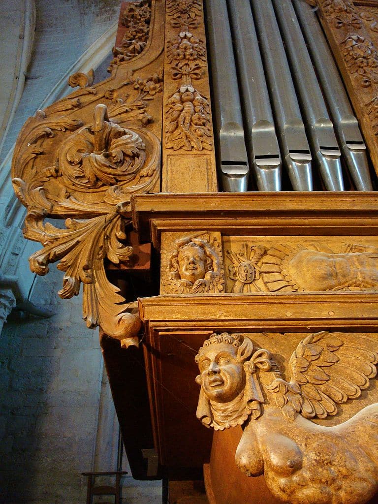 Grand Orgue: CD – f3 Bourdon 16′, Montre 8′, Bourdon 8′, Dessus de Flûte 8′ (discant), Prestant 4′, Grand Tierce 3 1/5′, Nazard 2 2/3′, Quarte 2′, Tierce 1 3/5′, Cornet 5 rangs (discant), Plein-Jeu + Doublette 7-8 rangs, 1ère Trompette 8′, 2èmeTrompette 8′, Clairon 4′.