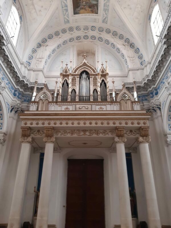 Sebastiano Calcerano Platania di Acireale bouwde in 1866 een nieuw mechanisch sleepladen-orgel met 13 stemmen, 1 manuaal en een vrij pedaal voor de Chiesa di San Giovanni Battista in Avola (Syracuse) Sicilia, Italië.