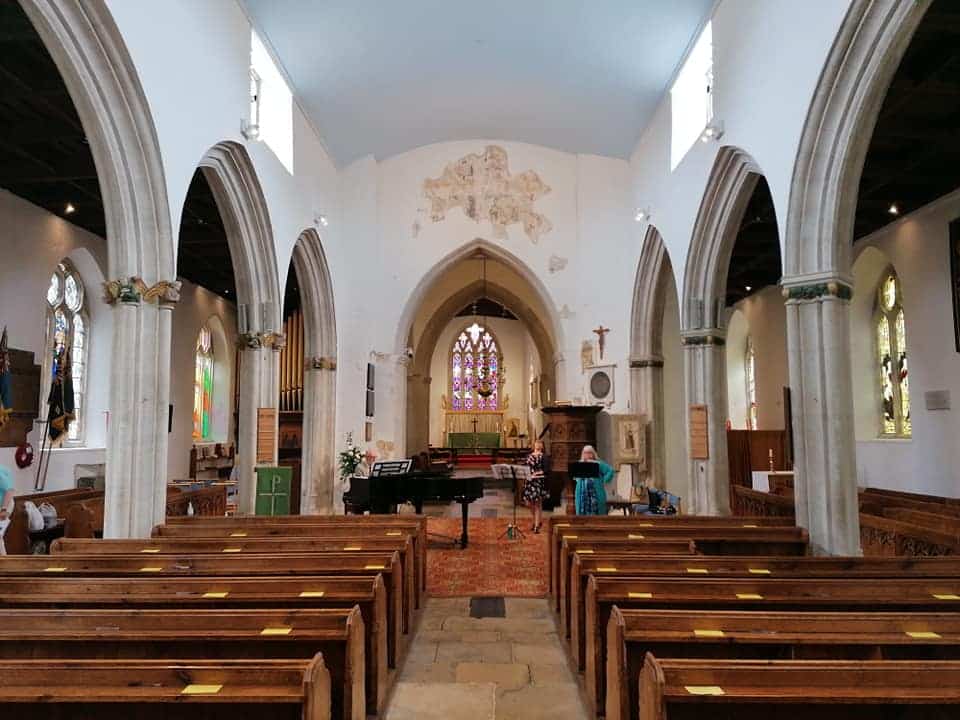 Great Organ: Open Diapason 8′, Small Open Diapason 8′, Hohl Flute 8′, Principal 4′, Harmonic Flute 4′, Fifteenth 2′, Trumpet 8′.
