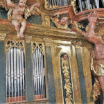 OBERWERK (C – g3) 56 TOETSEN: Prinzipal 8′, Bleigedeckt 8′, Gemshornflöte 8′, Prinzipal 4′, Spillflöte 4′, Oktav 2′, Blockflöte 2′, Quinte 1 1/3′, Sesquialter 2 fach (2 2/3′), Mixtur 4 fach (1′), Holzdulcian 16′, Cromorne 8′, Tremulant.