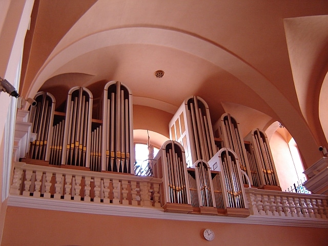 Banská Bystrica. In de Parochiekerk van Banská Bystrica (Banskobystrický kraj) Slowakije, staat een pneumatisch kegelladen-orgel waarvan de bouwer en het bouwjaar onbekend zijn.