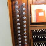 Pedal (Extensionen, C-f1): Grand Bourdon 16 * Flûtes 8 ** Bourdon 8 * Prestant 4 ** Flûte 4 * Oktavin 2 ** Bombarde 16 *** Trompetbass 8 *** Clairon 4 ***Koppels en Speelhulpen: Koppel II/Ped. Als trede rechts en als trekker Koppel III/Ped. Als trede rechts en als trekker Voettrede links: Zungeneinführung an/ab |
