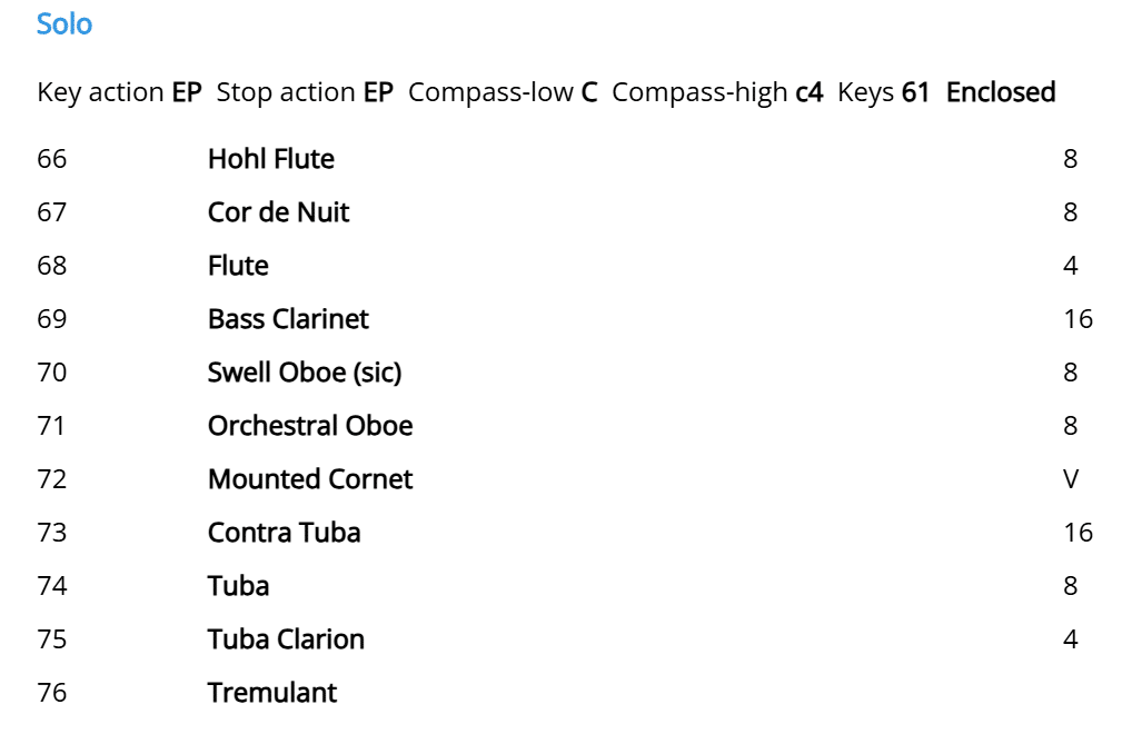 Forster & Andrews bouwde in 1869 een nieuw mechanisch sleepladen-orgel voor de Church of Saint Mary in Beverley (Yorkshire) UK. In 1888 en 1895 werd het door dezelfde firma verbeterd. T.C. Lewis bouwde het instrument in 1907 om. Daarbij werd de kas verwijderd, evenals 12 oude registers. In 1956-1964 is het instrument geheel omgebouwd door Hall & Broadfield. Er is een nieuwe vrijstaande speeltafel met 4 manualen en een radiaal concaaf pedaalklavier geplaatst en de tractuur is elektro-pneumatisch gemaakt met kegelladen. Het orgel is uitgebreid met een Solo. Het Choir kreeg een nieuwe plaats. Principal Pipe Organs reviseerde in 2006 het Choir.