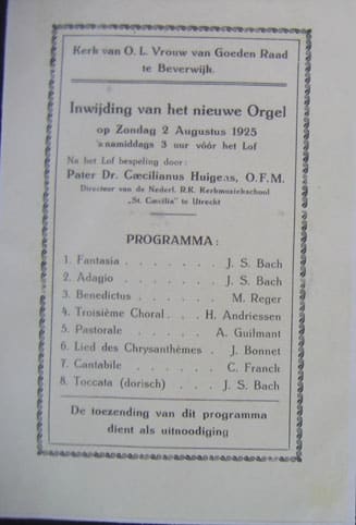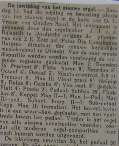 De dispositie van het Van den Bijlaardt-orgel: (1925)