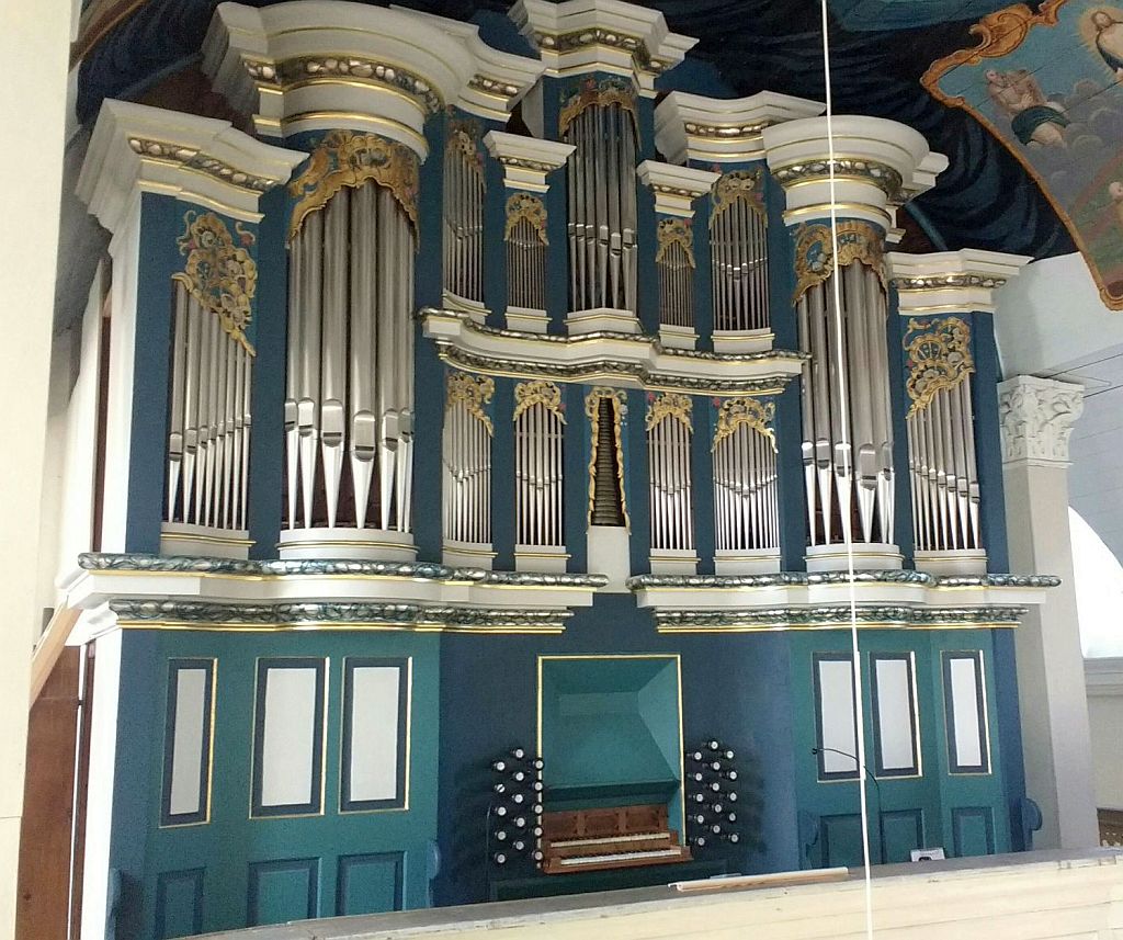 Hauptwerk: CD – c3 Quintathön 16′, Principal 8′ – 2018, Viola di Gamba 8′, Flûte Travers 8′, Gedackt 8′, Octave 4′, Quinta 3′, Octave 2′, Sexta 1 3/5′ – 2018, Mixtur 6 fach (2′), Cymbel 4 fach (1/2′).