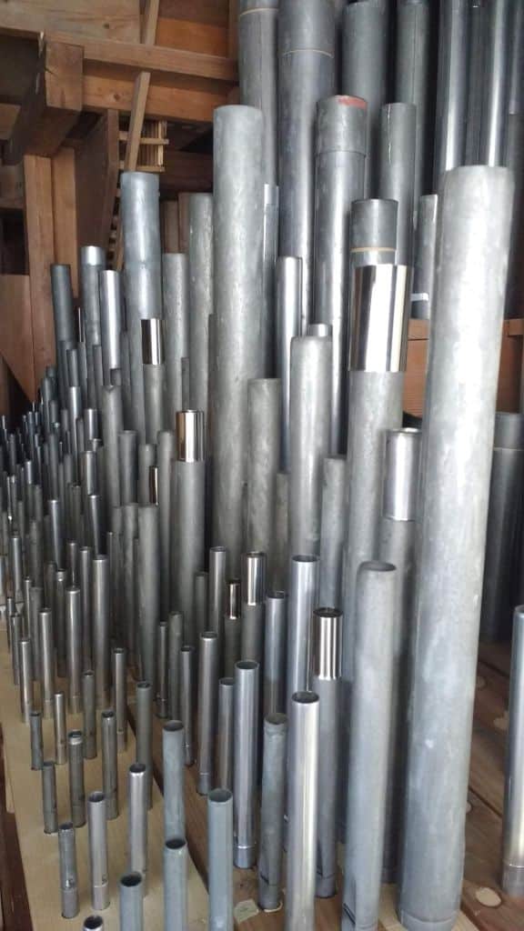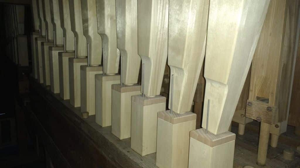 Oberwerk: CD – c3 Musicir Gedackt 8′, Quintathön 8′, Principal 4′ – 2018, Nachthorn 4′, Quinta 3′, Octave 2′ – 2015, Sexta 1 3/5′ – 2015, Mixtur 4 fach (1′), Glockenspiel (g°-c3).