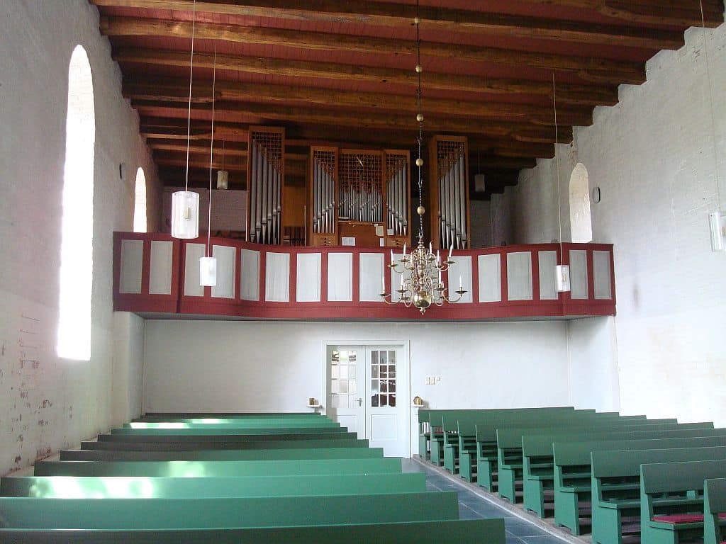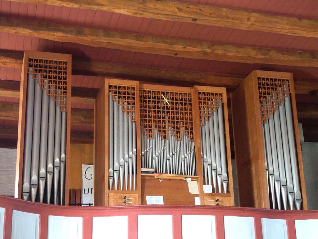 Oberwerk (C-f3): 54 toetsen Gedackt 8′, Rohrflöte 4′, Flöte 2′, Oktave 1′.