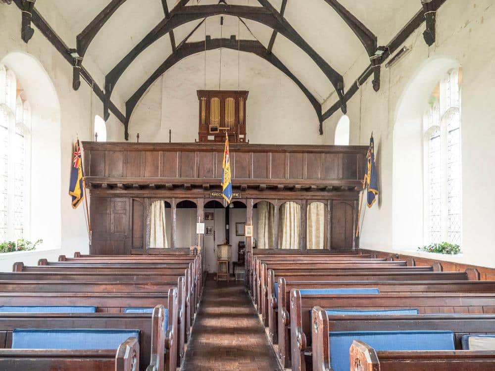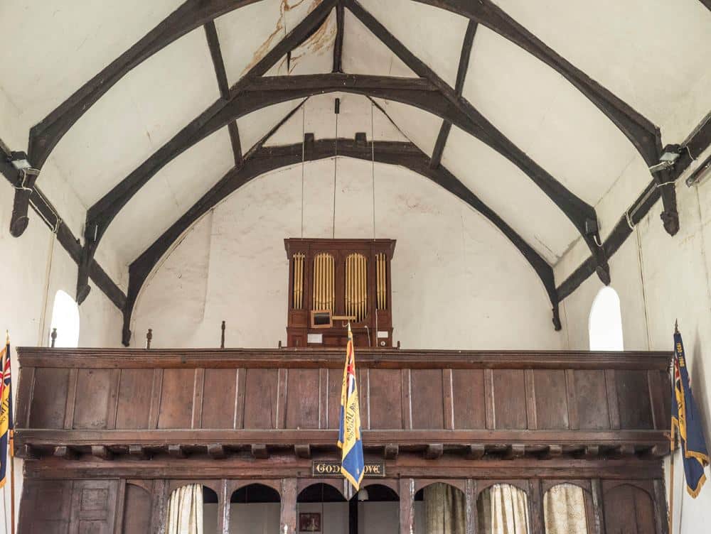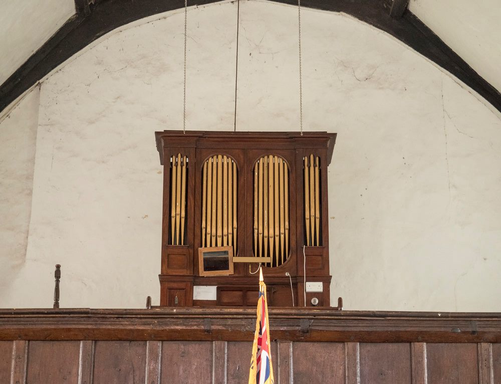 Manual: GG – f3 Stop Diapason Bass, Stop Diapason Treble, Dulciana, Open Diapason, Principal, Fifteenth.
