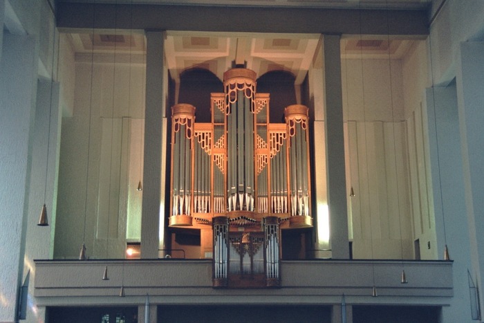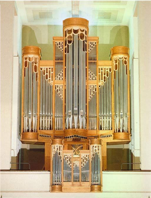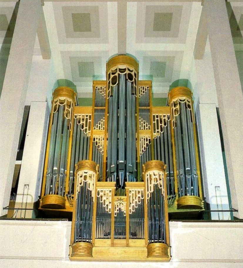 HAUPTWERK (C – g3) 56 TOETSEN: Praestant 16′, Principal 8′, Hohlflöte 8′, Gambe 8′, Octave 4′, Koppelflöte 4′, Quinte 2 2/3′, Octave 2′, Cornett 5 fach (8′), Mixtur 4 fach (1 1/3′), Trompete 8′, Chamade 8′.
