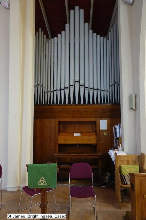 Norman & Beard bouwde in 1900 een nieuw mechanisch sleepladen-orgel met pneumatische tractuur voor het pedaal, 2 manualen en een vrij pedaal voor de Church of Saint James in Brightlingsea (Essex) UK. Hill, Norman & Beard breidde het instrument in 1925 uit naar 12 stemmen en voerde in 1975 een restauratie uit.