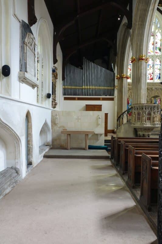 Choir: C – c4 (61 toetsen) Stopped Diapason 8′, Dulciana 8′, Voix Celeste 8′, Gemshorn 4′, Flute 4′, Nazard 2 2/3′, Blockflute 2′, Tierce 1 3/5′, Larigot 1 1/3′, Trumpet 8′, Clarinet 8′.