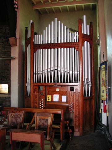 Swell: (in zwelkast) Open Diapason 8′, Stopped Diapason 8′, Salicional 8′, Gemshorn 4′, Oboe 8′.