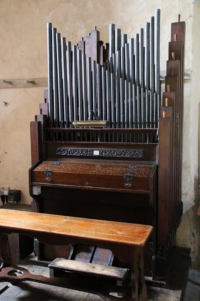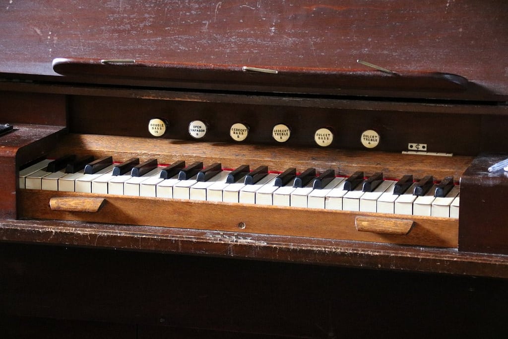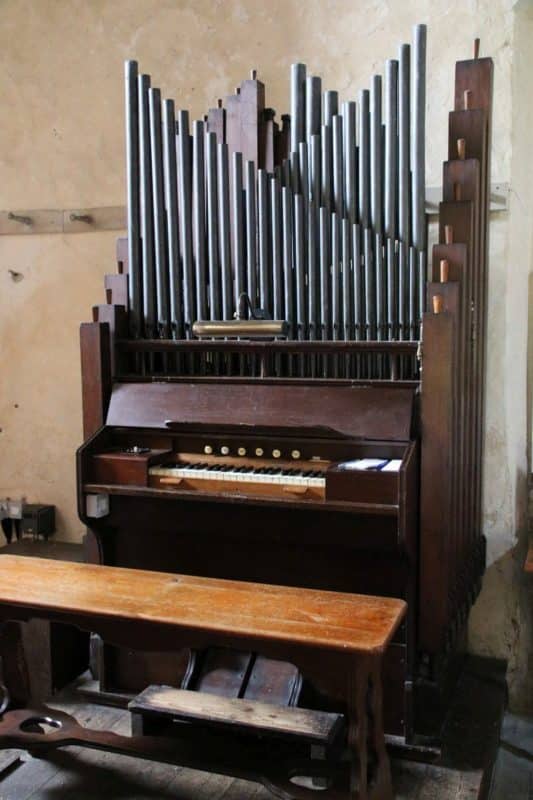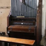 Manual: F – c3 Double Bass 16′ (F-c’), Open Diapason 8′ (vanaf g°), Gedeckt 8′ (gedeeld), Dulcet 4′ (gedeeld).