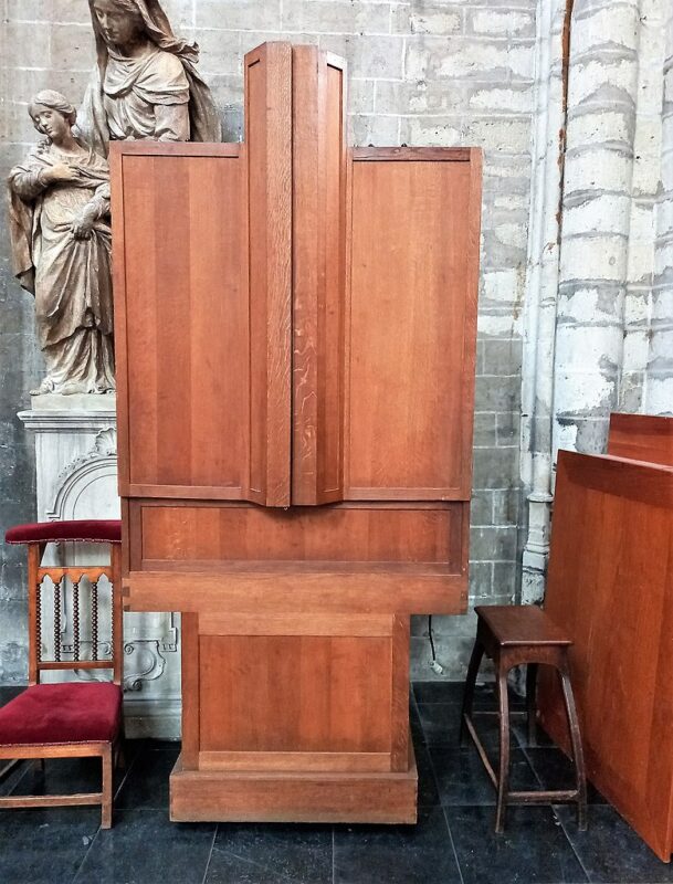 Patrick Collon bouwde in 1973 een nieuw positief met mechanische tractuur en een sleeplade voor de kathedraal te Brussel, dat eenvoudig te verplaatsen is. Het orgeltje met 5 stemmen en 1 manuaal zonder pedaal werd op een onderstel met wielen geplaatst. Op 17 mei 1973 is het instrument in gebruik waarbij het bespeeld werd door Jozef Sluys. Het orgel heeft geen tongwerken.