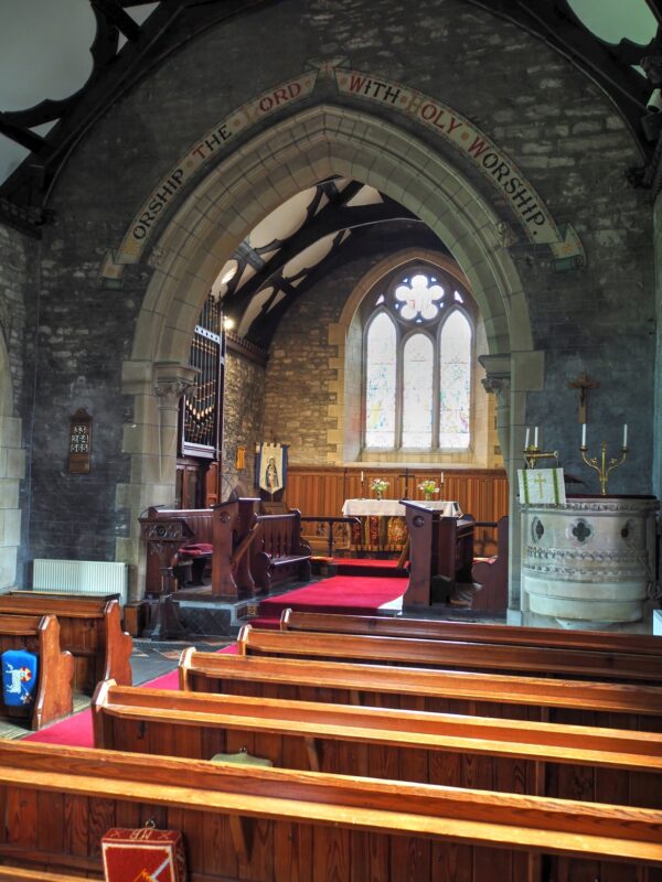 Great: C – g3 (56 toetsen) Open Diapason 8′, Stopped Diapason 8′, Principal 4′, Flute 4′, Fifteenth 2′.