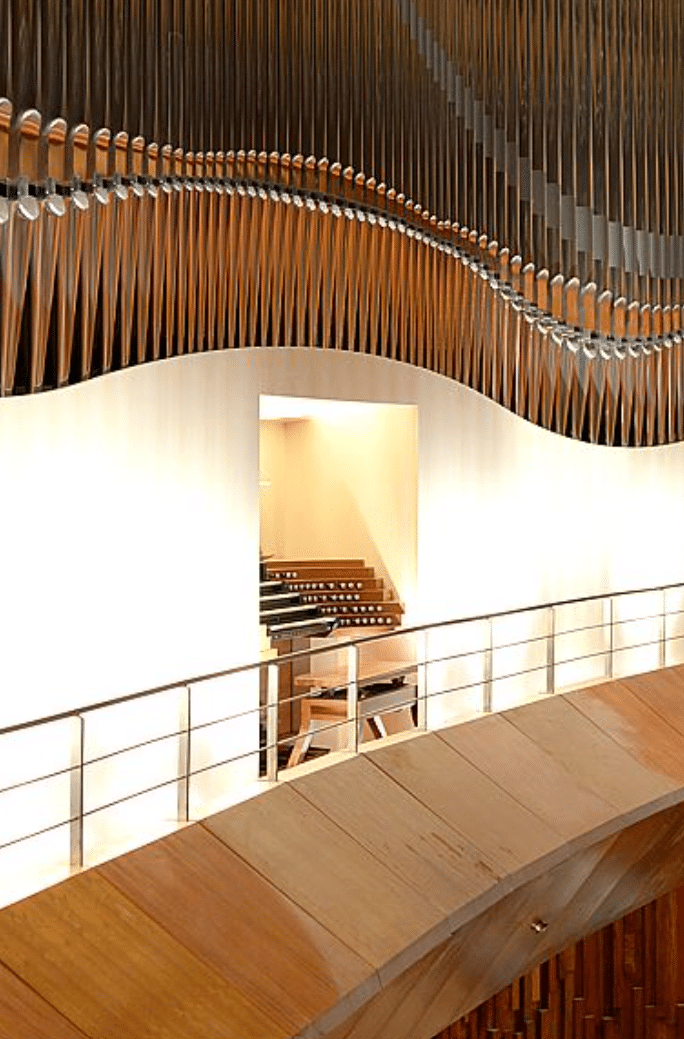 RÉCIT EXPRESSIF (C – c4) 61 TOETSEN: Quintaton 16′, Diapason 8′, Flûte Traversière 8′, Viole de Gambe 8′, Voix Céleste 8′, Cor de Nuit 8′, Flûte Octaviante 4′, Viole 4′, Nazard Harmonique 2 2/3′, Octavin 2′, Tierce Harmonique 1 3/5′, Plein Jeu Harmonique 4 rangs (2 2/3′), Basson 16′, Trompette Harmonique 8′, Basson-Hautbois 8′, Voix Humaine 8′, Soprano Harmonique 4′, Trémolo.