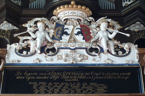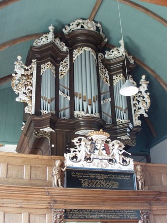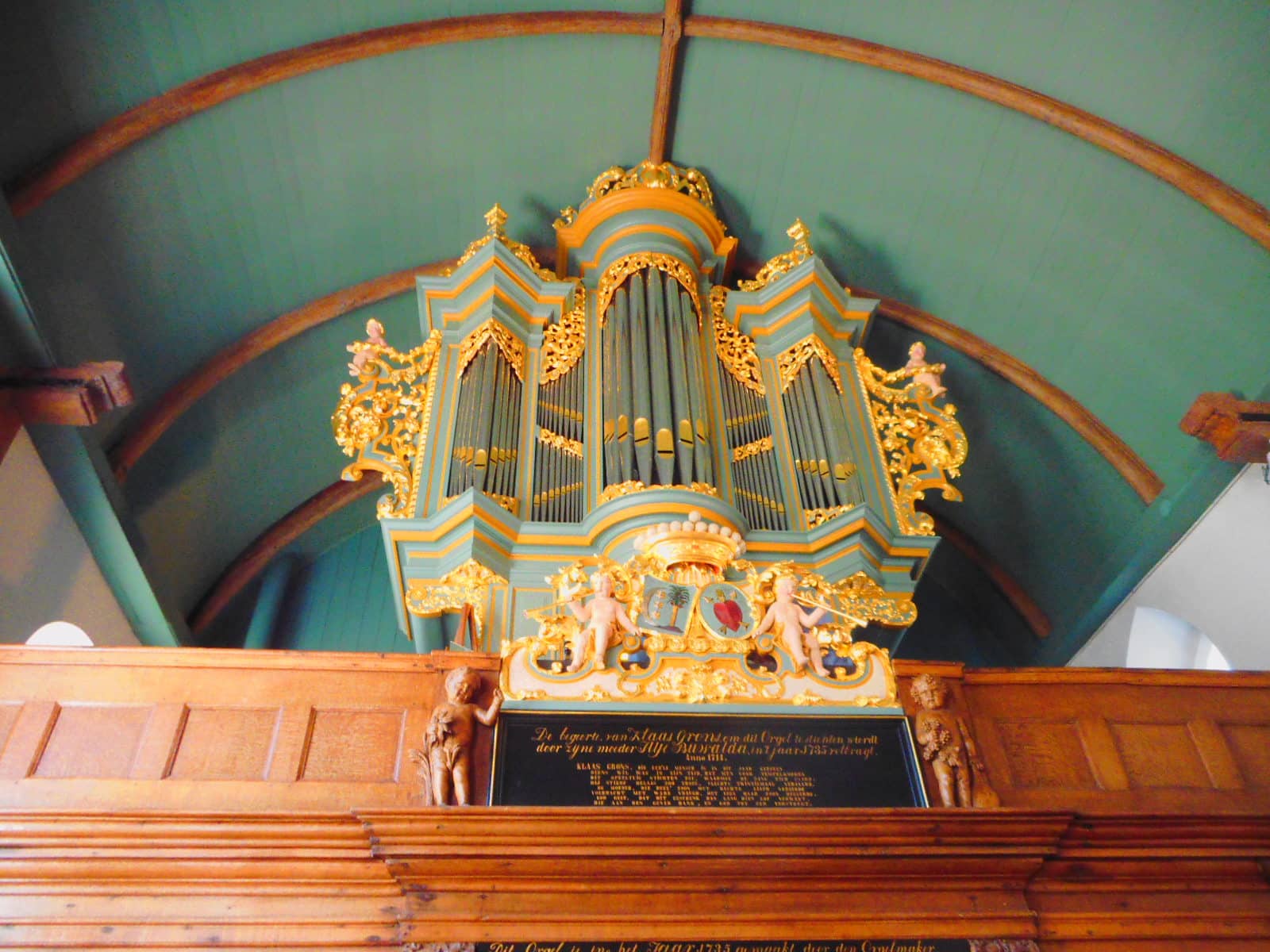 - Het orgel werd gebouwd met één manuaal en aangehangen pedaal. Het was een geschenk via een legaat van Klaas Grons J.U. Stud, die op 20-jarige leeftijd was overleden. Op 24 juni 1736 nam men het orgel in gebruik. In 1822 werkte Van Dam aan het orgel. Mogelijk vervingen zij de Mixtuur door een Fluit 4′. De firma J. Reil voerde in 1948 een restauratie uit, waarbij gelijk een tweede manuaal en een vrij pedaal werden gebouwd. Hiertoe is de kas dieper gemaakt. Ook werd de klavieromvang vergroot. Reil verving de Quint 1 1/2′ van het Manuaal door een Mixtuur. Er was tot 1948 nog een extra Prestant 8′ discant op het manuaal.