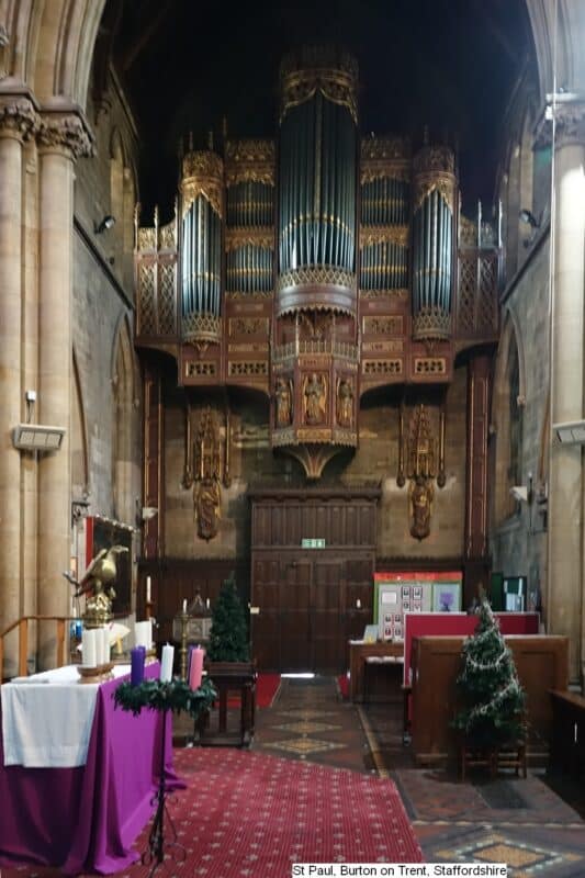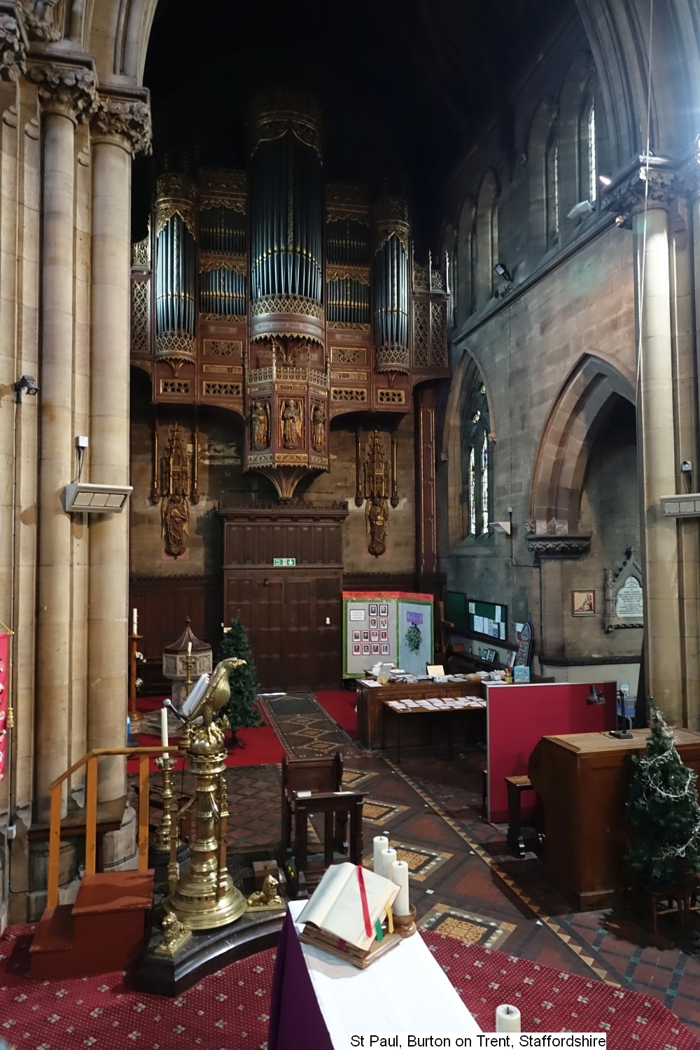 In 1894 bouwde Robert Hope-Jones een nieuw mechanisch sleepladen-orgel met gedecoreerde frontpijpen, 3 manualen en pedaal voor de Church of Saint Paul in Burton upon Trent (Staffordshire) UK. In 1906 is het instrument gewijzigd door Norman & Beard. Hill, Norman & Beard restaureerde het in 1925. Later is het uitgebreid met een vierde manuaal en is de tractuur elektrisch gemaakt. Het pedaalklavier was concaaf. In 1984 was het orgel onbespeelbaar. Daarna is het meeste pijpwerk en de speeltafel verwijderd en verplaatst naar het Theatre Organ Heritage Centre and Hope-Jones Museum in Lancashire. Het is niet bekend of dit museum nog bestaat.