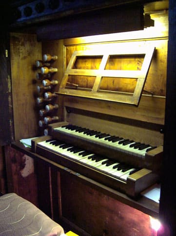 Oberwerk (D-d3, grün) Geigenprincipal 8 Lieblich Gedackt 8 Fugara 8 Principal 4 Spitzflöte 4 Oktave 2 (fehlt) Cornett 3fWindablassventil |