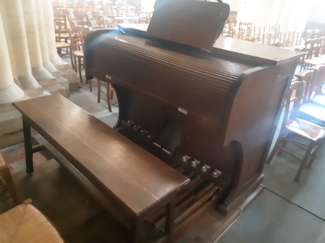 Grand Orgue Expressif: C-f3 Bourdon 16′, Montre 8′, Tibia Clausa 8′, Prestant 4′, Nazard 2 2/3′, Flautino 2′.