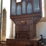 Grand Orgue: C – g3 (56 toetsen) Montre 8′, Bourdon à Cheminée 8′, Prestant 4′, Doublette 2′, Cornet 5 rangs (discant), Plein Jeu 4 rangs, Trompette 8′.