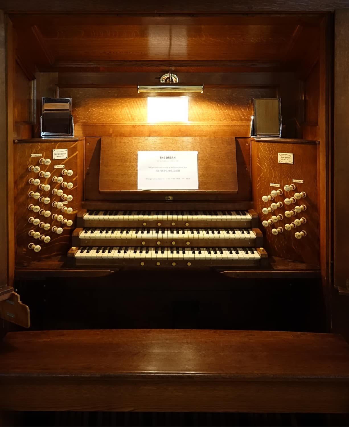 Pedal Organ: C – f1 (30 toetsen) Open Diapason 16′, Bourdon 16′, Lieblich Bourdon 16′ – from Swell, Octave Diapason 8′ – extension, Octave Bourdon 8′ – extension.