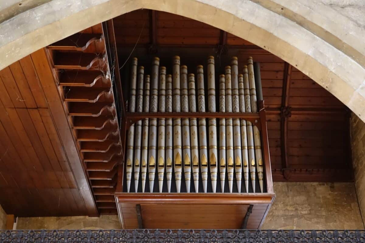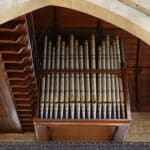 GREAT (C – c4) 61 TOETSEN: Open Diapason 8′, Violin 8′, Clarabella 8′, Dulciana 8′, Principal 4′, Harmonic Flute 4′, Twelfth 2 2/3′, Fifteenth 2′, Mixture 3 ranks, Trumpet 8′.
