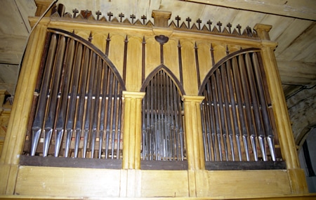 MANUAL (C – c3) 49 TOETSEN: Principal 8′, Viola da Gamba 8′, Flöte 4′, Waldflöte 2′.