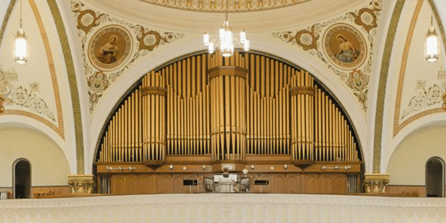 Enclosed Section: Doppel Flute 8′, Claribel Flute 8′, Gemshorn 8′, Gemshorn Celeste 8′ (TC), Octave 4′, Harmonic Flute 4′, Twelfth 2 2/3′, Fifteenth 2′, Mixture 3 ranks, French Trumpet 8′, Chimes.
