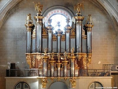 Grand Orgue: C – f3 Bourdon 16′, Montre 8′, Bourdon 8′, Dessus de Flûte 8′ (discant), Prestant 4′, Nazard 2 2/3′, Quarte 2′, Doublette 2′, Tierce 1 3/5′, Cornet 5 rangs (discant), Fourniture 4 rangs, Cymbale 4 rangs, 1ère Trompette 8′, 2ème Trompette 8′, Voix Humaine 8′, Clairon 4′.