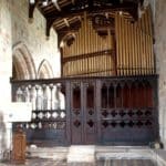 Great Organ: C – a3 Open Diapason 8′, Stopt Bass 8′ (C-B), Gedact Treble 8′ (TC), Octave 4′, Stopped Flute 4′, Twelfth 2 2/3′, Fifteenth 2′, Trumpet 8′.