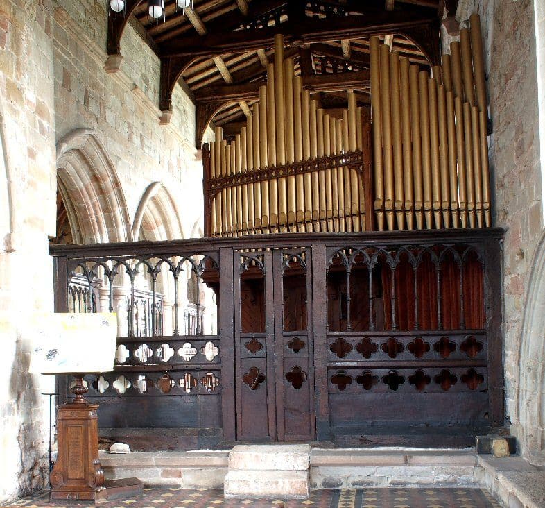 Swell Organ: C – a3 Violin Diapason 8′, Lieblich Gedact 8′, Dulciana 8′, Salicet 4′, Piccolo 2′, Mixture 2 ranks, Trumpet 8′, Oboe 8′.