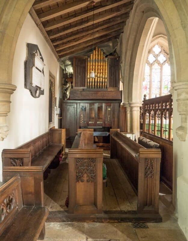 GREAT (C – g3) 56 TOETSEN: Open Diapason 8′, Stopped Diapason Bass 8′, Dulciana 8′, Principal 4′, Harmonic Flute 4′.
