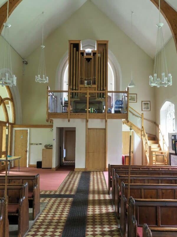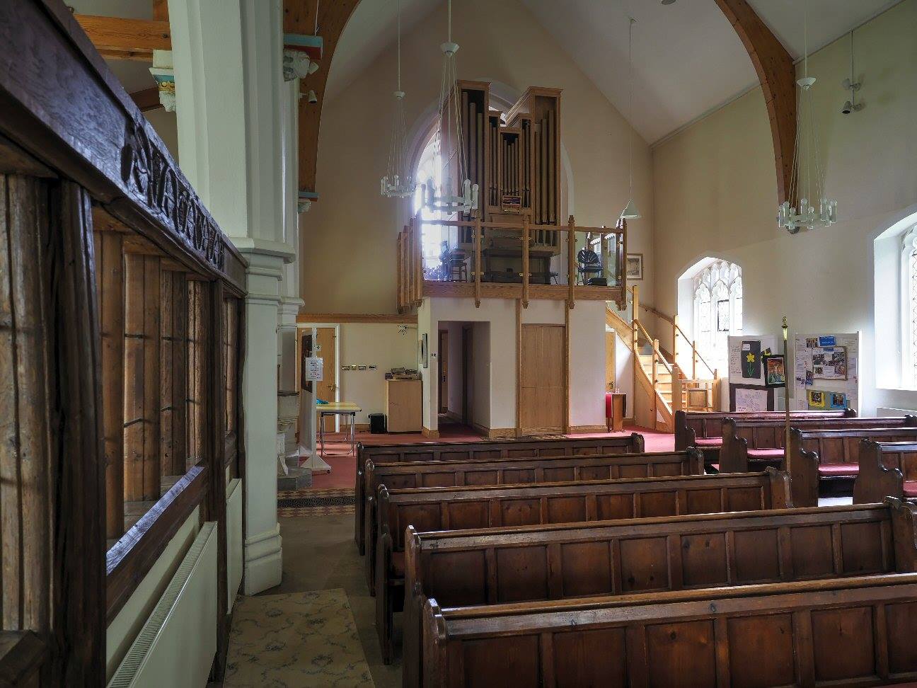 Great: C – g3 Melodic Bass 16′ – 2003, Open Diapason 8′, Stopped Diapason 8′ A, Dulciana 8′ D, Principal 4′ B, Stopped Flute 4′ A, Fifteenth 2′ B.