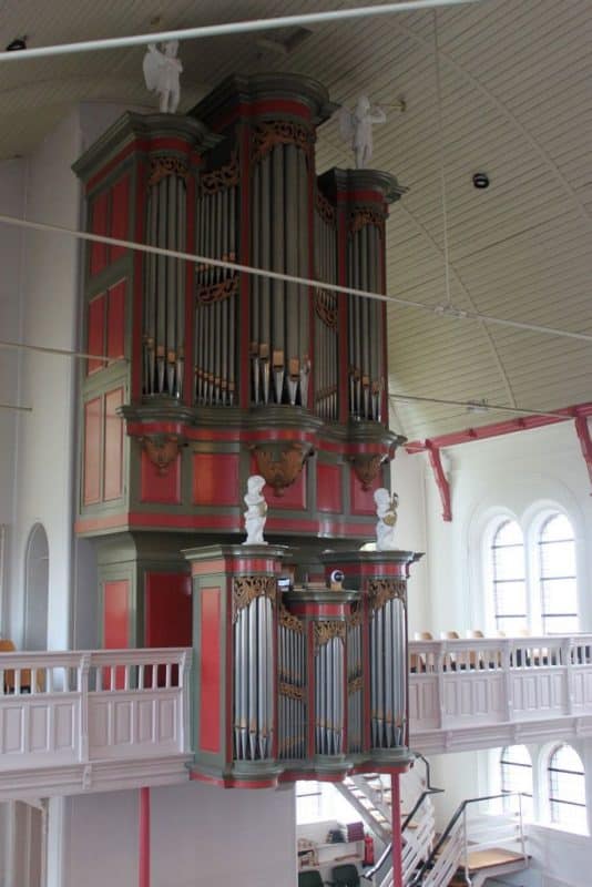 Hoofdwerk: C – f3 Bourdon 16′, Prestant 8′, Holpijp 8′, Octaaf 4′, Fluit 4′, Nasard 2 2/3′, Gemshoorn 2′ – 1952/1961, Mixtuur III-IV sterk, Trompet 8′ – 1913 – Bakker & Timmenga, Tremulant.