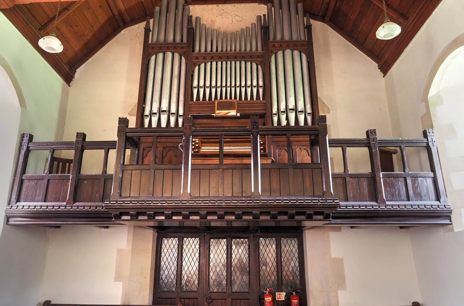SWELL: C – g3 (56 TOETSEN) IN ZWELKAST Violin Diapason 8′, Stop Diapason 8′, Viol di Gamba 8′, Principal 4′, Tremulant.