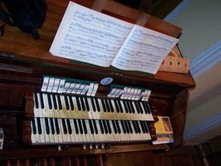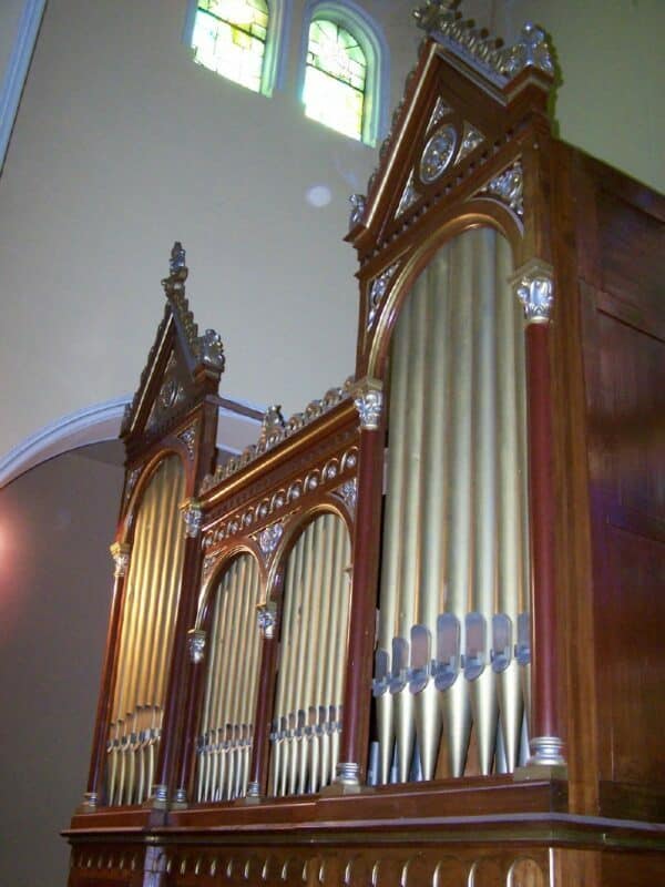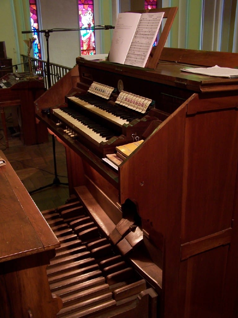 (II) Récit-Expresif: C – a3 Principal Violon 8′, Viola Gambe 8′, Vox Celeste 8′, Cor de Nuit 8′, Flûte Octaviante 4′, Trompette 8′, Basson y Hautbois 8′.