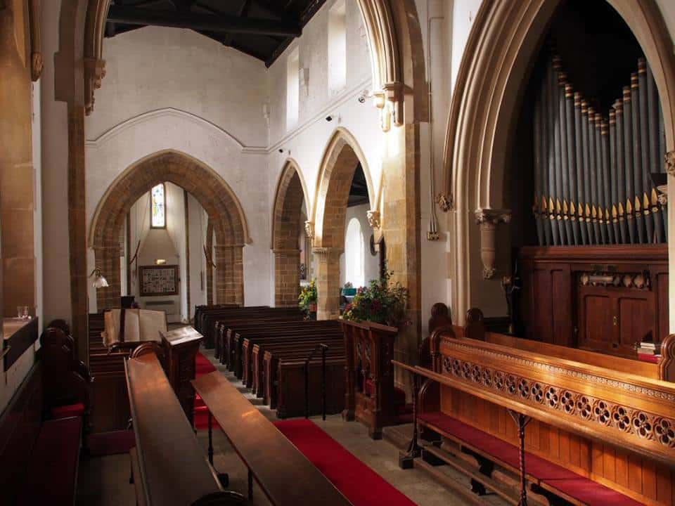 Great: C – f3 (54 toetsen) Open Diapason 8′, Stop Diapason Bass 8′, Stop Diapason 8′ TC, Dulciana 8′ TC, Keraulophon 8′ TC, Flute 4′ TC, Principal 4′.